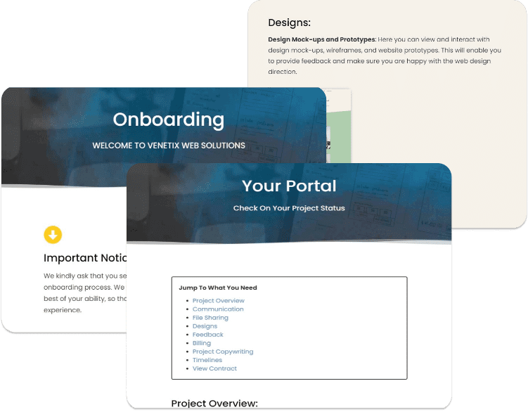 If you like our proposal, we will onboard you into our client portal. Here, you’ll have access to all project outlines, designs and communication channels.