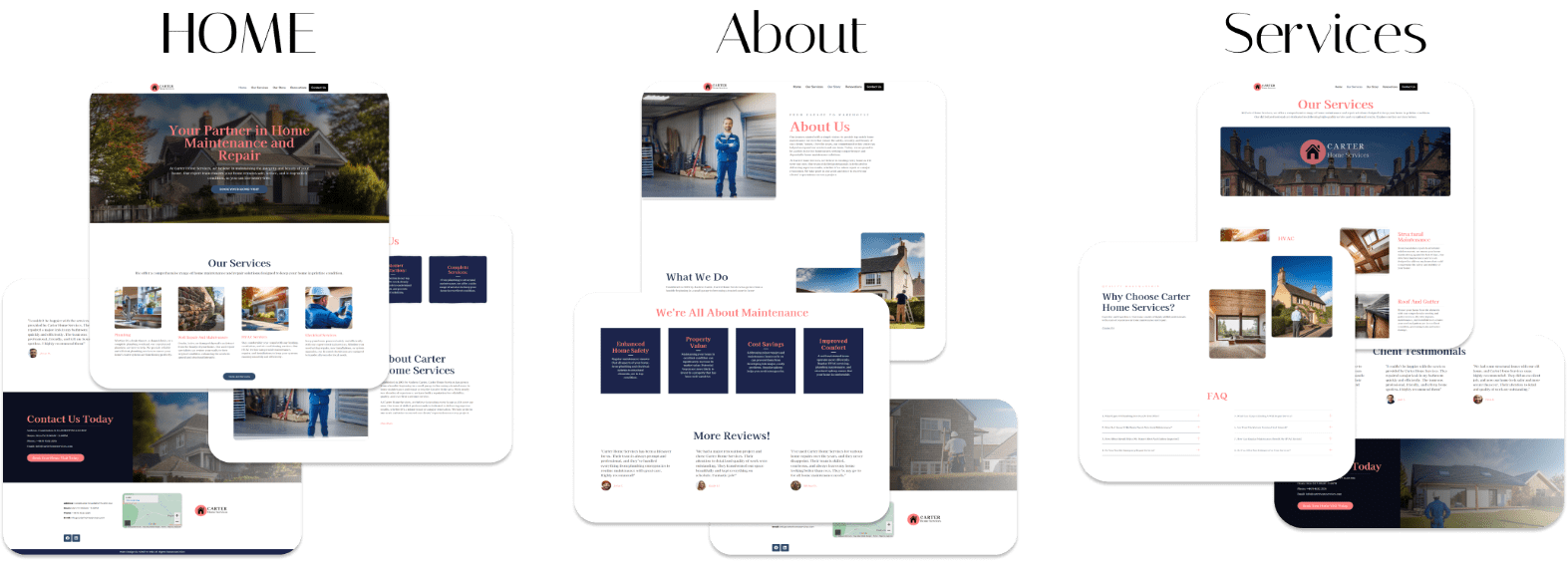*Pictured above is a website we created for a housing maintenance company (pages shown are the home, about and service page), the brief was simply to make them their first website and fill it with their existing logos and content from Facebook. We ended up adding some unique content and a couple of photoshopped bits and pieces to bring their brand together properly in a smart looking website.